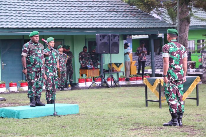Ruslan-Rahman, Wamena | Dandim 1702/JWY Letkol Cpn Athenius Murip, S.H.,M.H memimpin langsung upacara Corps Raport pindah satuan , di Lapangan Upacara Makodim 1702/Jayawijaya, (24/11/2022).