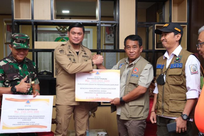 Ruslan-Rahman, Gowa | Pemerintah Kabupaten Gowa mendapat bantuan total senilai Rp 350 juta dari Badan Nasional Penanggulangan Bencana (BNPB) untuk penanganan bencana banjir dan longsor.