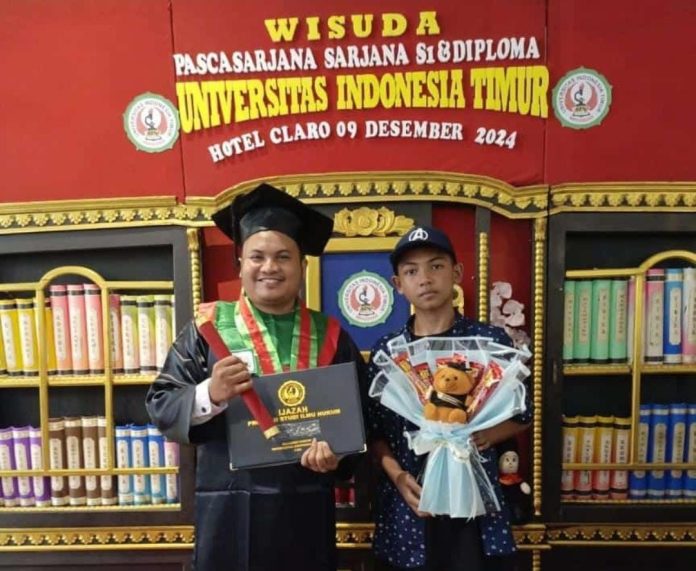 Ruslan Rahman, Makassar | Ketua LSM PERAK Indonesia, Adiarsa kini resmi menyandang gelar Magister Hukum setelah mengikuti wisuda Pascasarjana Universitas Indonesia Timur (UIT) Makassar di Phinisi Hall Hotel Claro, Senin (09/12/24).