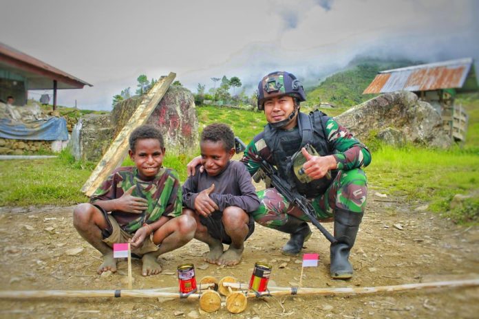 Ruslan-Rahman, Nduga | Satgas Yonif Raider 321/GT/13/1 Kostrad memperkenalkan permainan tradisional kepada anak-anak di Pedalaman Papua tepatnya di Kampung Mbua, Distrik Mbua, Kabupaten Nduga, Papua.